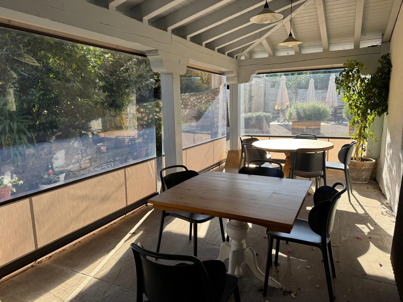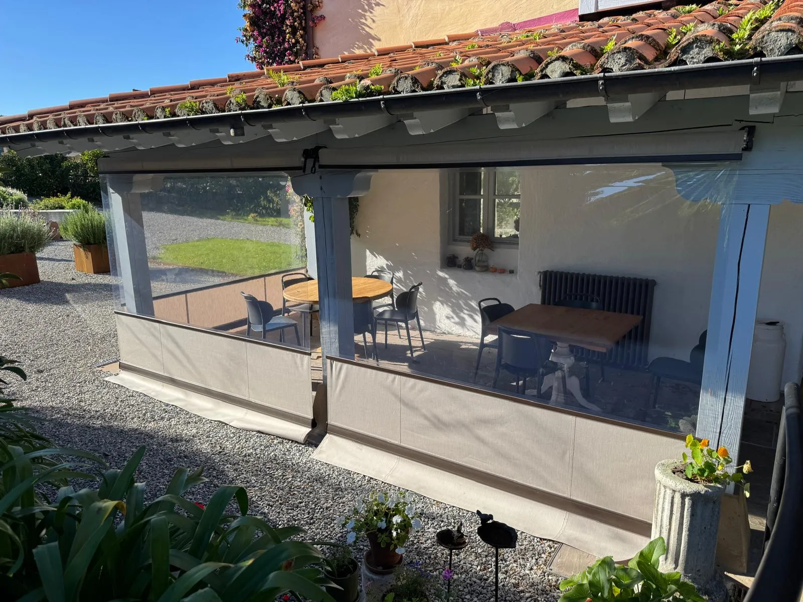 Hemos instalado estos toldos verticales con ventana para el Hotel las Casonas en Guemes, Cantabria.